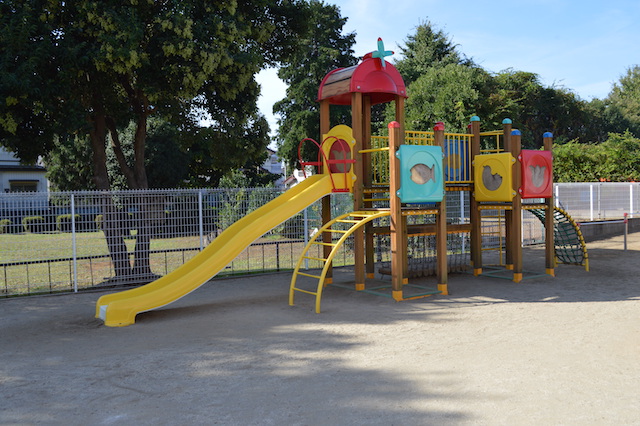 広々とした園庭で、園児全員が園庭に出てものびのびと遊ぶことができます。